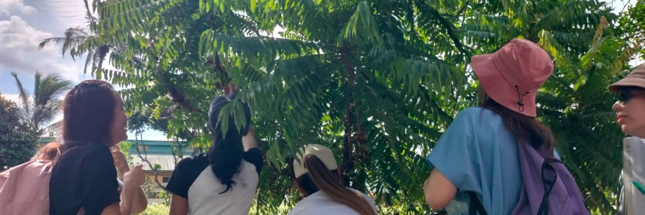 Looking for bees: Melissa Ong and Cuifen brought a small group on a walk around a public park. As they looked for bees, the group discussed about what plants and habitats are needed for bees to thrive.